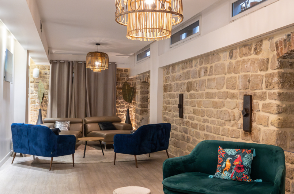 Entièrement réaménagé, le Loft de Pierres, niché en sous-sol, dévoile un cadre authentique avec leurs pierres naturelles, enveloppant l’espace d’une atmosphère chaleureuse et singulière.